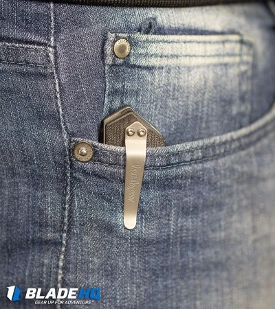 The Injection 3.5 folder is a Todd Rexford design with milled G-10 scales and a stout liner lock frame. It features custom details that include a decorative pivot, machined countersunk thumb stud and a chamfered backspacer too. The flat ground drop point blade has a bead blast finish and plain cutting edge. The Injection is loaded with all the things you’d want in an everyday carry knife, including a reversible tip-up carry pocket clip.